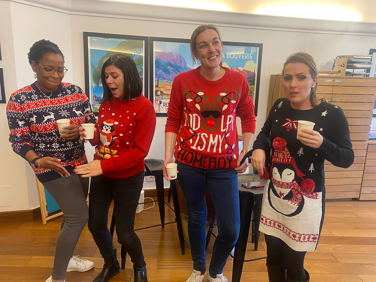 L’occasion, pour certains, comme vous le verrez sur les photos, de tester la grande roue, n’est-ce pas Seb, Nathalie et Sandrine ? Ou de présenter leur plus « beau » pull de Noël. Petit clin d’œil à Micheline, Virginie et Barbara ! Avec une mention spéciale pour la version clignotante d’Alexandra !