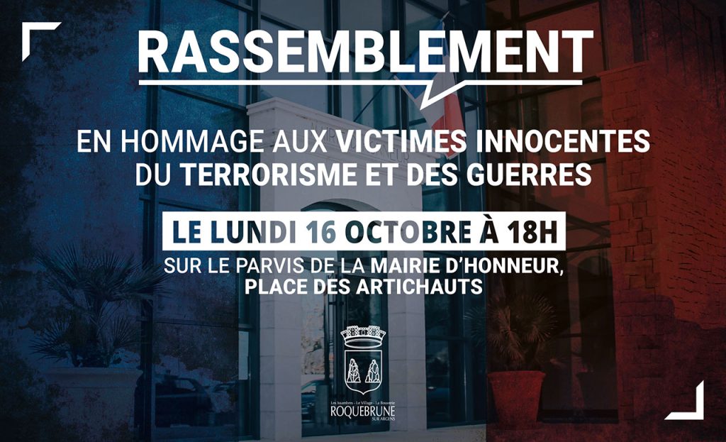 En raison des événements tragiques qui se déroulent en France et partout dans le Monde, la Municipalité de Roquebrune-sur-Argens souhaite rendre un hommage à toutes les victimes innocentes du terrorisme et des guerres.