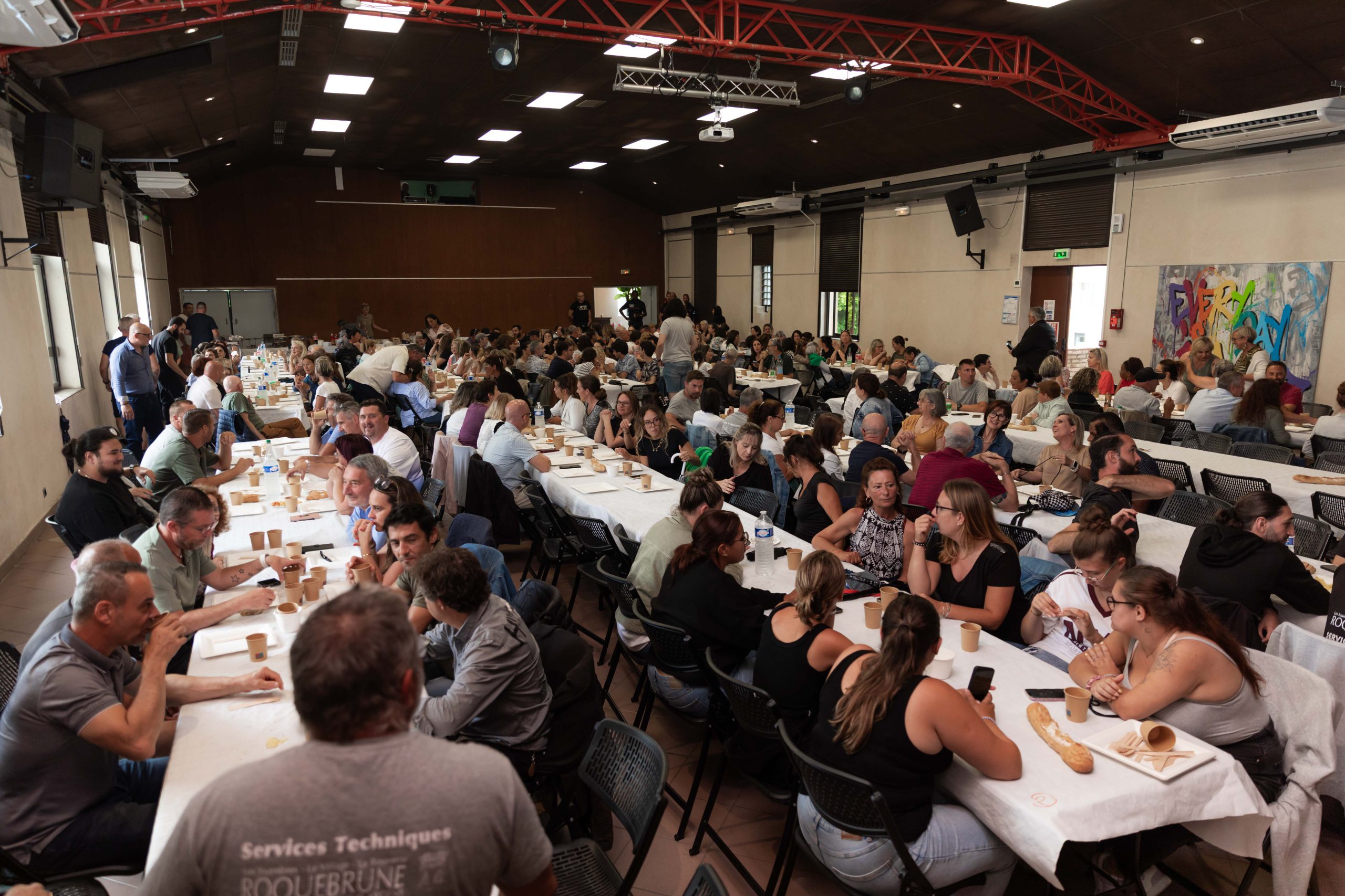 Jeudi 4 juin, la salle Molière a résonné de rires, de conversations animées… et de quelques notes de musique ! À l’initiative de la Municipalité, un repas de cohésion a réuni l’ensemble des services municipaux autour d’un moment convivial. Ce rendez-vous a permis à chacun – élus, agents administratifs, techniques, sociaux, culturels ou encore éducatifs …